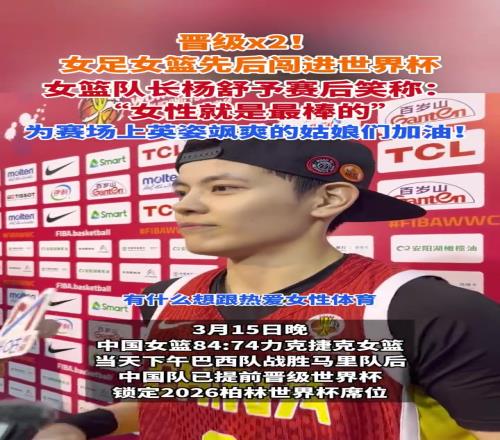 女篮女足均晋级世界杯!杨舒予to热爱体育的女性:女性就是最棒的