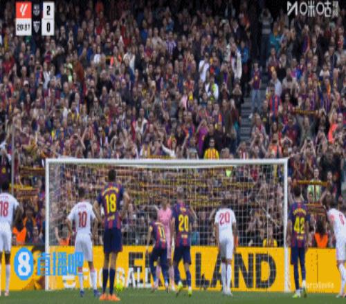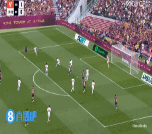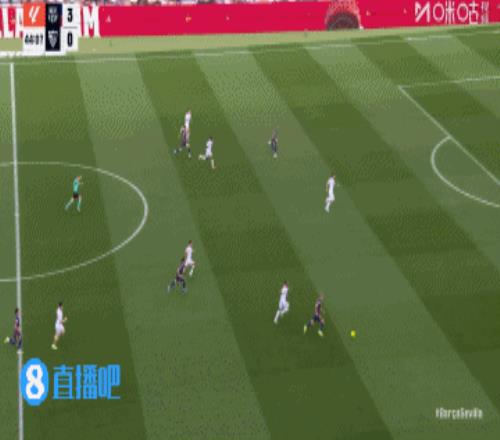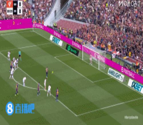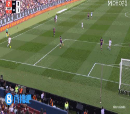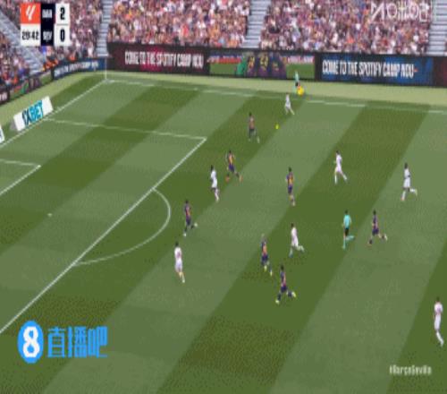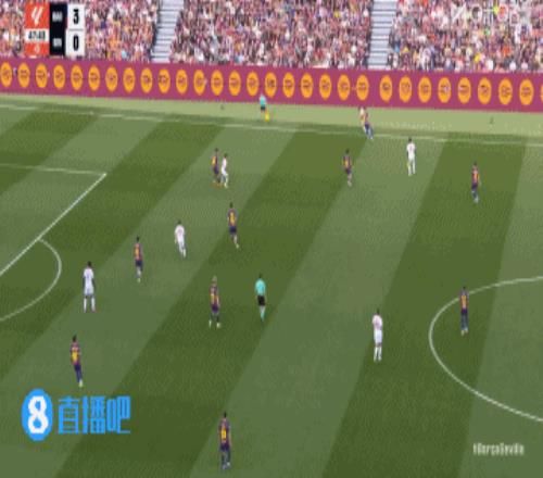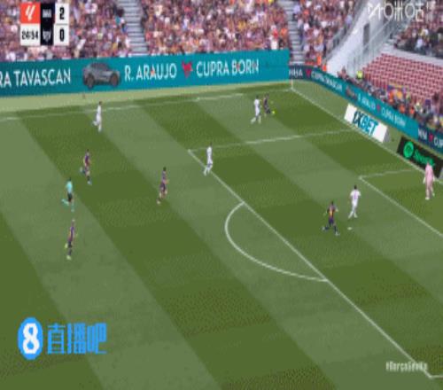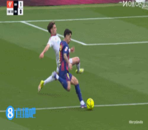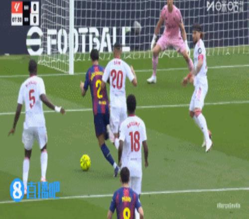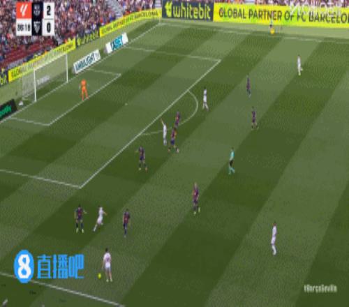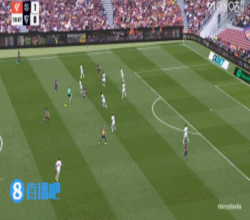 巴萨丢球!第45+3分钟,胡安卢·桑切斯右路下底传中,巴萨后防盯人不紧,奥索凌空垫射入网,巴塞罗那3-1塞维利亚!↓