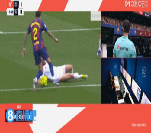 坎塞洛两次造点!第18分钟,坎塞洛禁区内扣球摆脱,卡尔莫纳倒地铲球时有手球,通过VAR,裁判再次判罚点球!↓